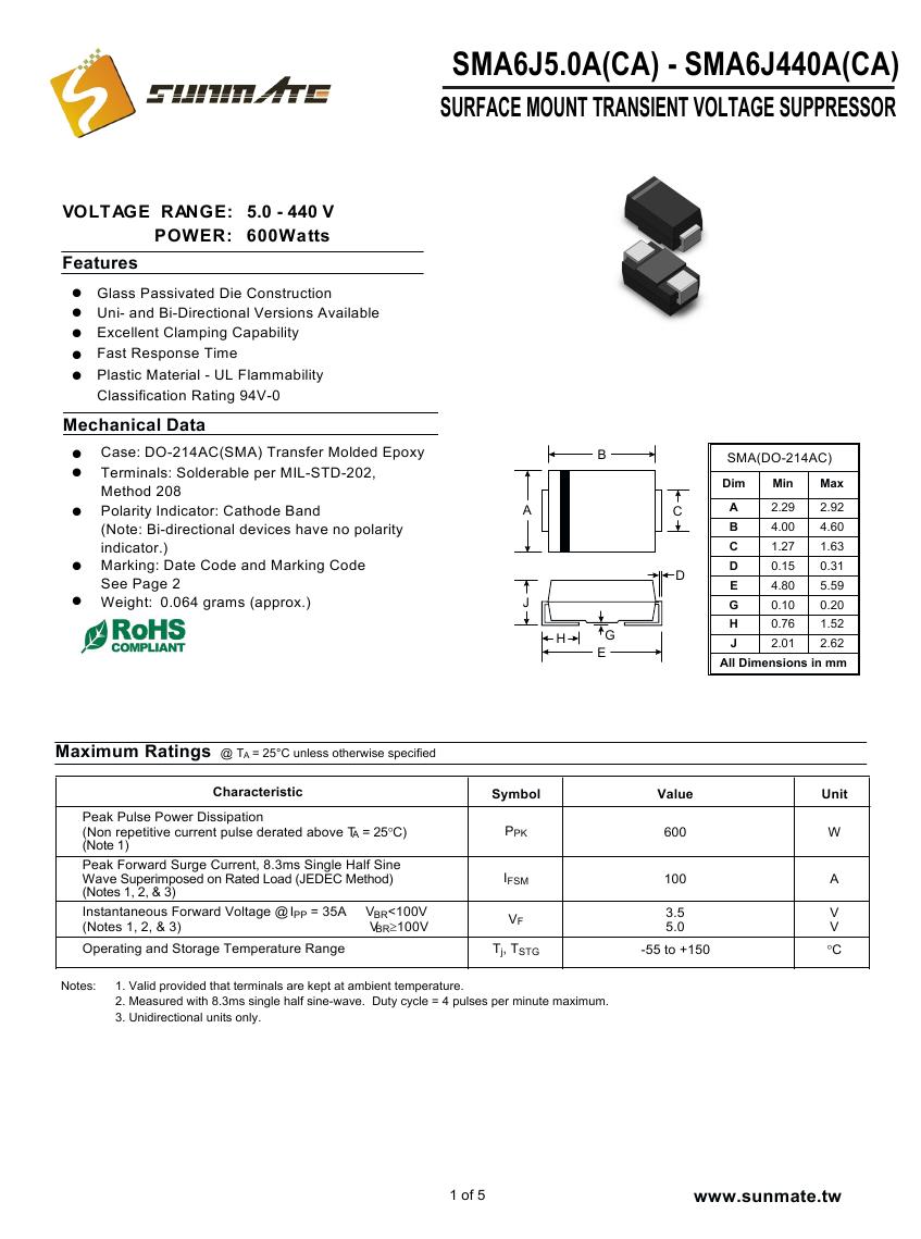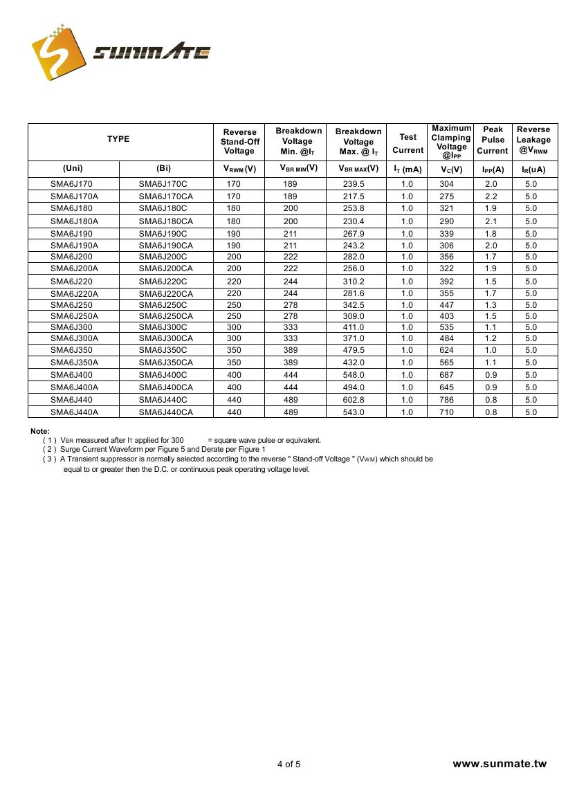 4.(600W瓦) SMBJ系列 SMB 封装 10.(4600W瓦) SM6S系列 DO-218AB 封装